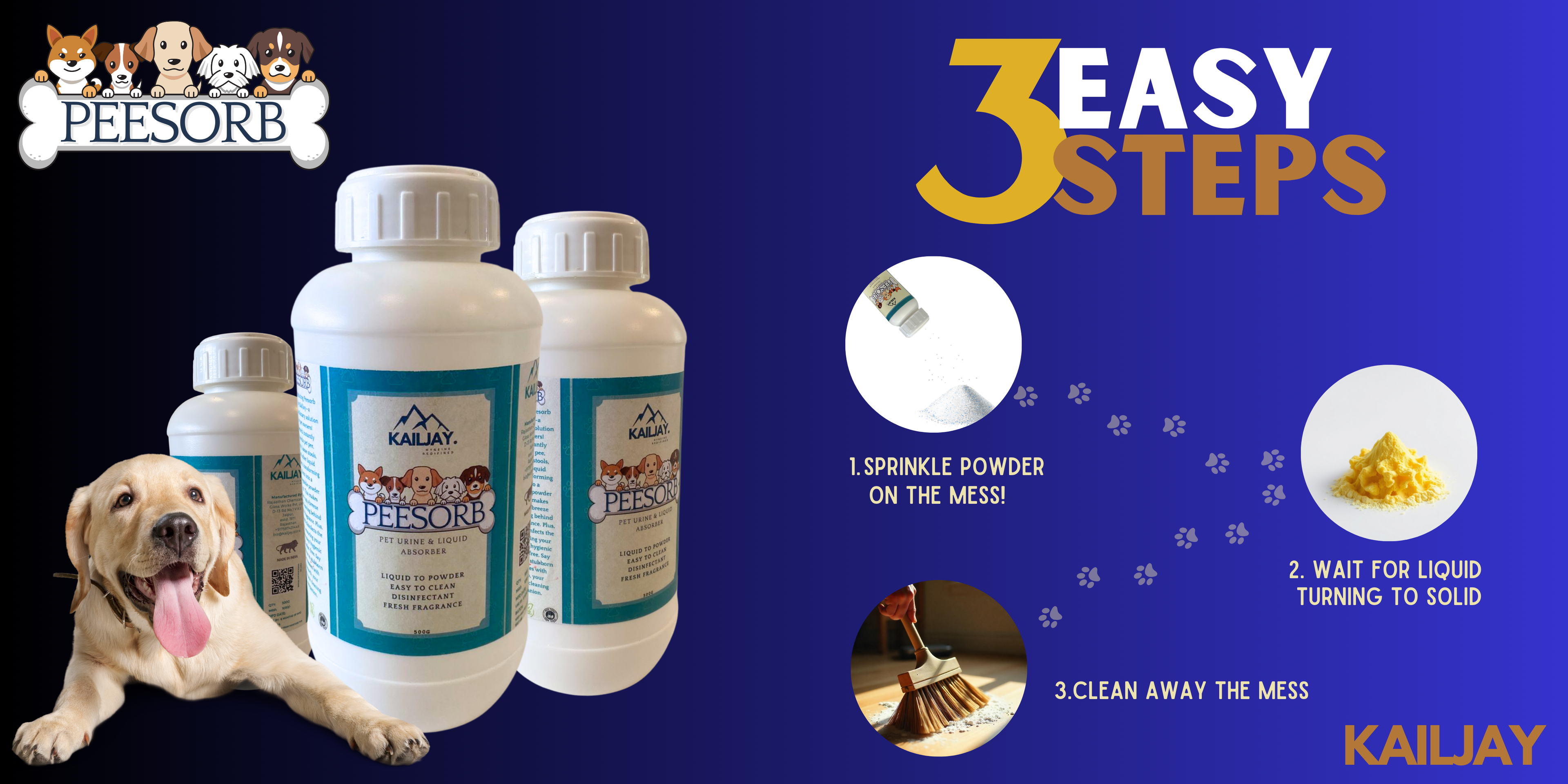 Kailjay, peeSORB Pet Pee Absorber(500G), Liquid To Gel, Easy To Clean, Disinfectant, Fresh Fragrance
