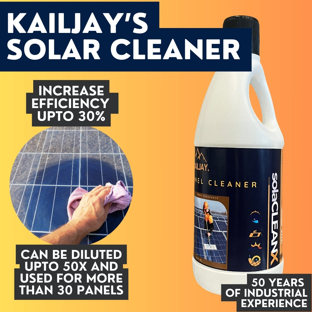 Supercharge Your Solar Savings with Kailjay's solaCLEANX! Kailjay's solaCLEANX is the concentrated solar panel cleaning solution that cuts through grime, dirt, and bird deposits like a boss. 'One 500mL bottle creates a whopping 25 liters of cleaning solution', enough to tackle up to 40 panels! Say goodbye to efficiency-robbing grime and hello to maximum solar power generation! Order solaCLEANX today and unleash the full potential of your solar investment!